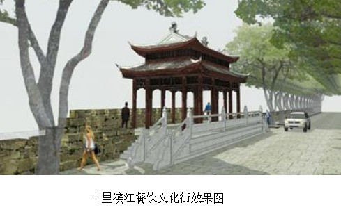 劉剛說,在10公里的濱江大道上,規(guī)劃了八個景觀節(jié)點,沿江的城墻以及6座城門,“這是在原址上再現(xiàn)清代城門。”