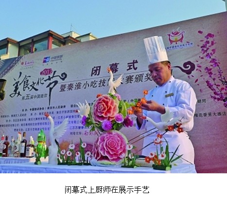 昨日,歷時一個月的“2012第五屆中國南京美食文化節(jié)”在南京市夫子廟秦淮風(fēng)光帶圓滿落幕。閉幕式上,名店大廚現(xiàn)場PK廚藝,創(chuàng)新的秦淮小吃吸引了廣大市民前往品嘗。此次美食節(jié)由南京市政府、南京市商務(wù)局主辦,南京市餐飲商會協(xié)辦,揚子晚報參與承辦。美食節(jié)以“民國大菜”和“秦淮小吃”為主題,組織了一系列活色生香的美食活動,市民參與度極廣,整個美食節(jié)既體現(xiàn)南京美食文化水平,也極具互動性,在社會上產(chǎn)生了廣泛的影響力。