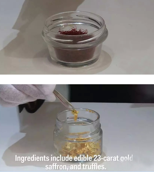 這款“黑鉆冰淇淋”,單球售價817美金(約合人民幣5060元),主要使用了馬達加斯加香草、伊朗藏紅花和意大利黑松露這些最頂級的食材,上面還撒上了23K可食用金箔。