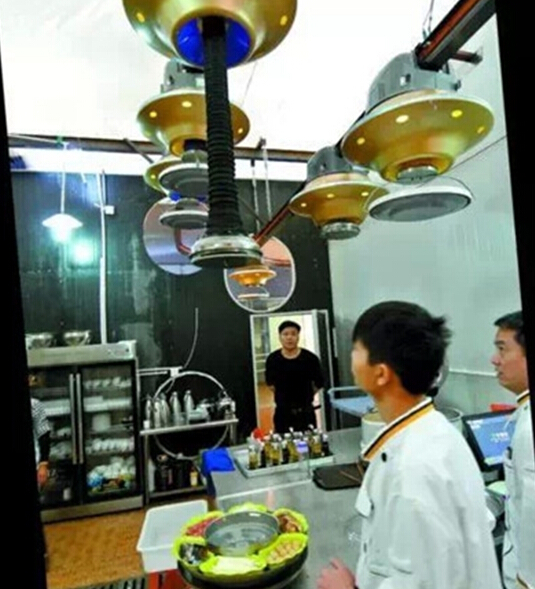 餐廳的主人——李平,對飛碟餐廳的前景非常看好。“我這個飛碟餐廳在全世界是首創的,以后會顛覆服務業的模式。”幾年前,在他的主導下,組建團隊開發了這臺飛碟傳菜系統并取得國家實用新型專利。李平表示采用飛碟傳菜、機器人服務的最大好處是節省人工。