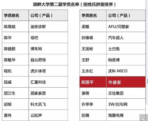 如果說,58同城總裁姚勁波、唱吧CEO陳華、易果生鮮董事長張曄、慶科CEO王永虹等接受過阿里投資的企業家,成為第二批學員并不稀奇,那么賈國龍、吳國平為什么要上這時髦的大學?