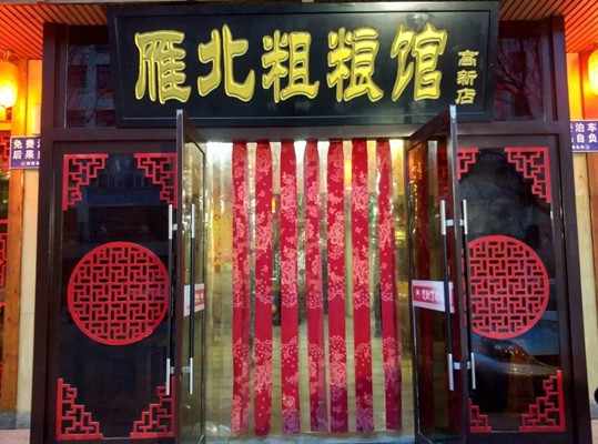 掌柜張耀東將這家叫做“雁北粗糧館”的店鋪收拾得很有家的味道,前門大紅的剪紙、黑底黃字的門頭,還有仿若飄帶的門簾,店內(nèi)原木的裝飾風格,再配上一道道美味佳肴,給人一種心情舒適的感覺。