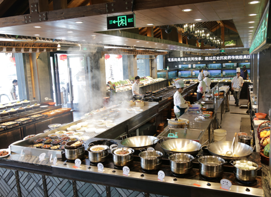 相對于大多數土菜館的夫妻檔,江南大院打造了手藝過硬的廚師團隊,他們在產品上,通過對蕭山美食的巧妙解讀來表現蕭山的豐富傳統、歷史與文化。在蕭山土菜館,通過明檔和菜品,將傳統技術與現代風格進行結合,向人們展示經過精心設計最能代表蕭山的菜肴。