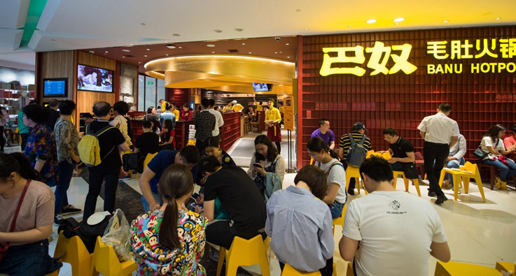 2018年5月16日,在北京東三環(huán)的一處大型購物中心里,巴奴毛肚火鍋開始了第一天的試營業(yè)。當(dāng)天是工作日,晚7點(diǎn)許,商場(chǎng)里人不多,但巴奴門外已經(jīng)有了排隊(duì)的顧客。